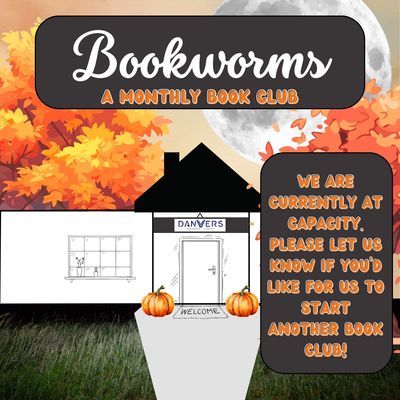 Bookworms is officially at capacity. If you are interested in joining a book club at the library, please email us at danvers.tl.rsa@gmail.com and we will add your name to a list for a new book club that we are forming.